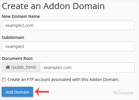 Leave the option Create an FTP account associated with this Addon Domain as it is.