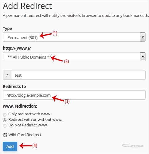 3. Under Add Redirect, you should enter the following details and choose the appropriate options.